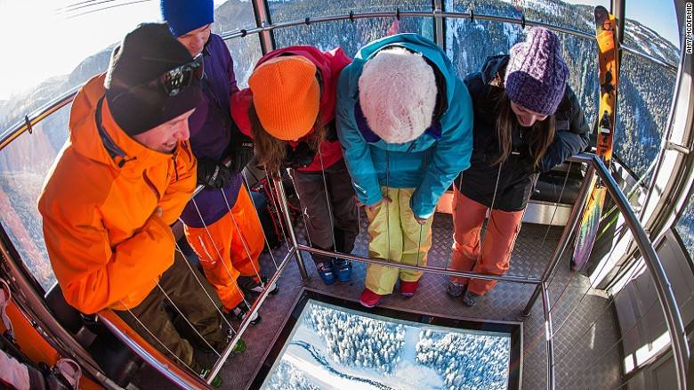 乘客有兩種選擇,一種是普通的纜車箱,比較便宜;一種是貴一點(diǎn)的,車廂底部是玻璃。