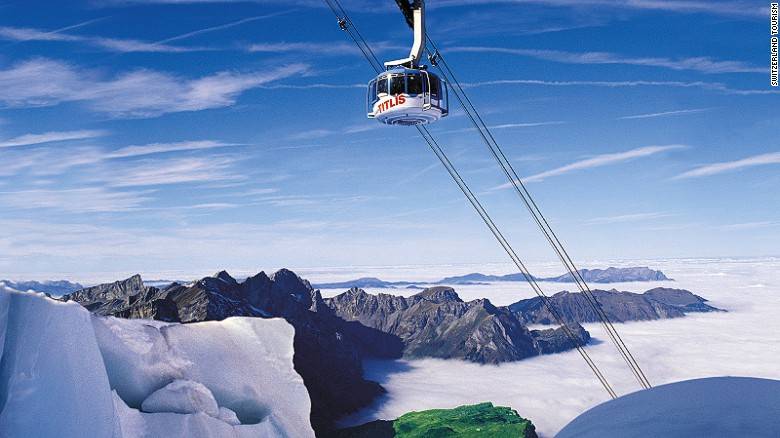 瑞士鐵力士山的旋轉(zhuǎn)纜車是世界上第一架采用旋轉(zhuǎn)車箱的纜車。