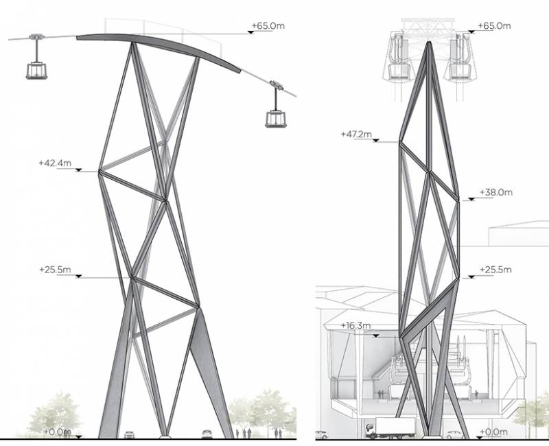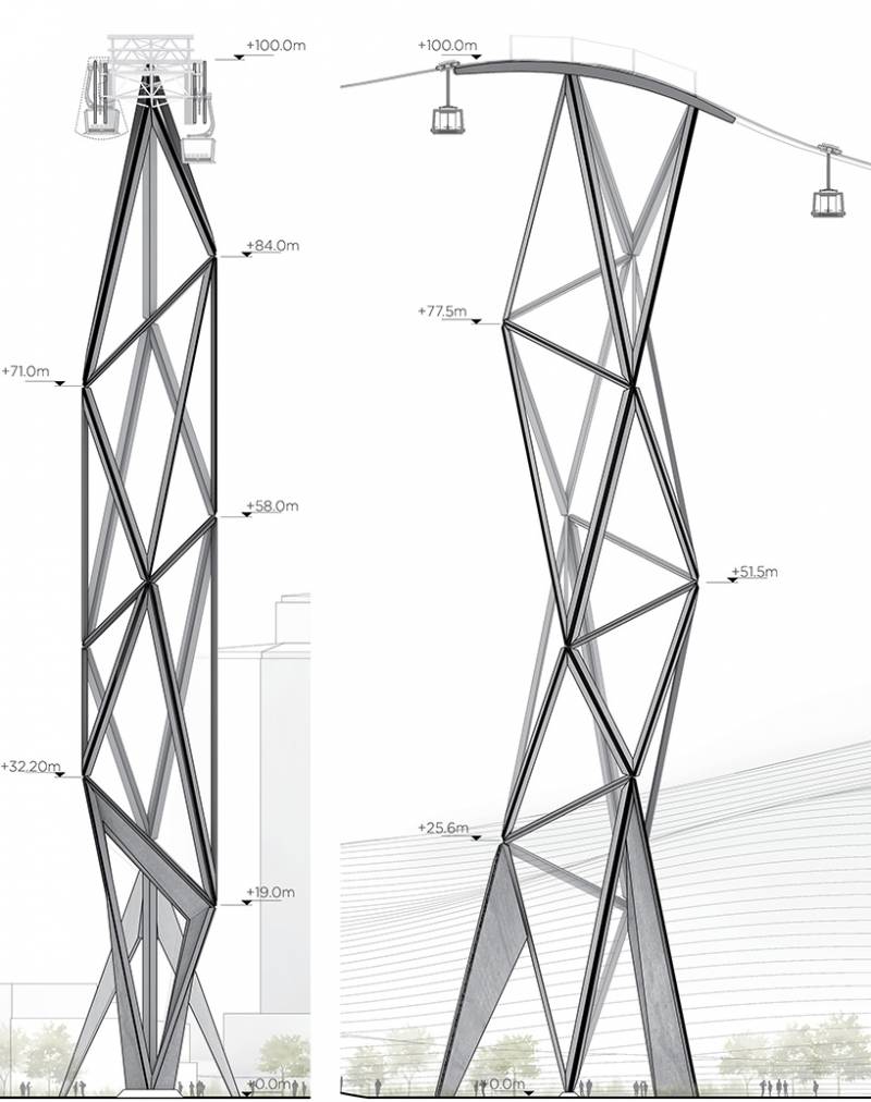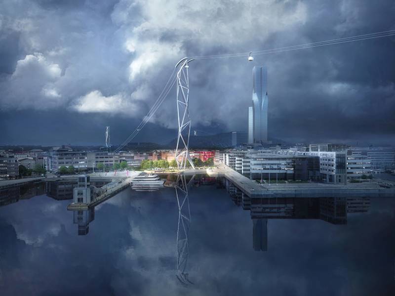 總路程3公里的纜車線路將從河流南岸歷史名城中的鐵匠街(järntorget)開始,首發(fā)站設有公共汽車換乘站。隨后線路跨越河流,繼續(xù)途徑城市北部的三個車站。六座索道塔外形參考了哥德堡當?shù)爻R姷拇瑥S起重機,分別在城市景觀中延續(xù)!斑@樣設計的目的是反映出這座工業(yè)化城市穩(wěn)健的歷史,同時暗指其廣闊的未來,” van berkel繼續(xù)道.“盡管索道塔屬于高等工程產品,但同時它們也有著相當強的雕塑感,它們外形纖細通透,構成獨特的城市景觀。”