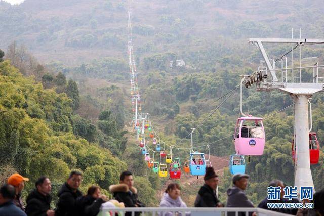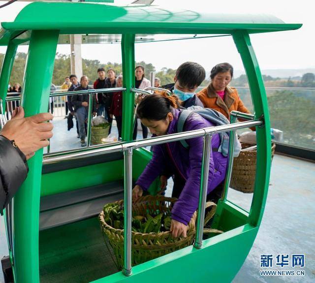 2月9日,涪陵區(qū)藺市鎮(zhèn)泡桐村村民帶著自家的農(nóng)產(chǎn)品,乘坐索道前往山下景區(qū)扶貧市場(chǎng)售賣。