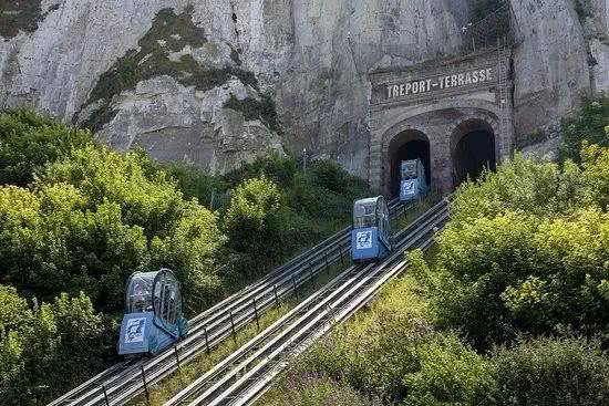 從市政廳出發(fā),要爬378個(gè)臺階才能到達(dá)山頂,想要節(jié)省體力的話可以搭乘直通山頂?shù)睦|車,纜車于1908年首次啟用,位于傾斜度達(dá)67度的陡坡上,一半位于隧道內(nèi),一半位于隧道外。纜車車廂很小,最多僅能搭乘10名乘客。在第二次世界大戰(zhàn)中纜車曾停運(yùn),2009年重新啟用。山頂上還有很多二戰(zhàn)遺留的廢棄軍事設(shè)施。如今戰(zhàn)爭煙云都已成往事,只有白色的巖石、湛藍(lán)的海水、寧靜的小鎮(zhèn)一如往昔、亙古未變。