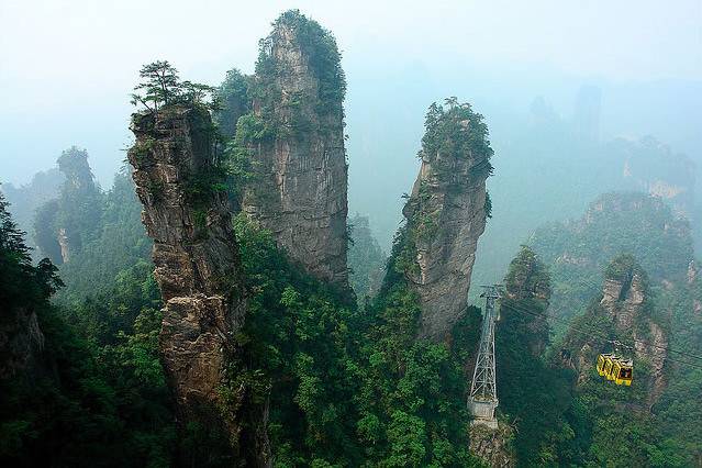 從天堂之門山可以欣賞到美景,這是該地區(qū)最高的山(1520米)。但是,您必須爬上沒(méi)有平臺(tái)的999樓梯停下來(lái)休息,或者乘坐這種纜車。天門山纜車是世界上最高的 - 準(zhǔn)備好上升到1279米高。