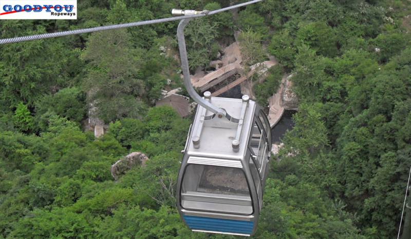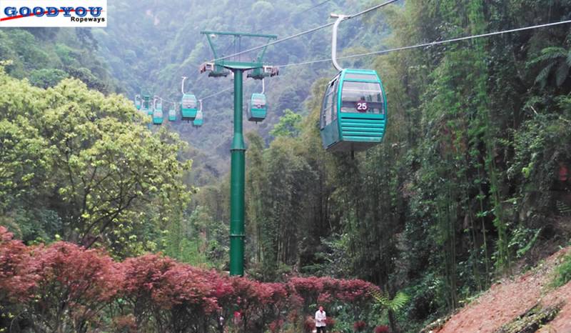 循環(huán)式吊廂索道適應(yīng)于復(fù)雜地形,帶有全景玻璃窗,全封閉,乘客安全感強(qiáng),乘坐舒適,免受日曬雨淋風(fēng)吹影響。