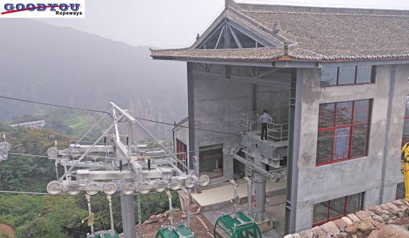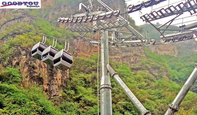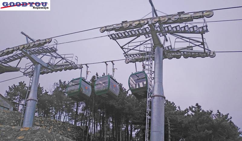 脈動(dòng)車(chē)組式索道是在線(xiàn)路上作脈動(dòng)運(yùn)行( 快行- 慢行-快行-慢行)的客運(yùn)索道,在運(yùn)載索上等距離用固定抱索器懸掛雙倍數(shù)成組車(chē)廂,車(chē)廂進(jìn)站以 0.3-0.5 米每秒運(yùn)行,車(chē)廂出站后加速以3-4 米每秒運(yùn)行。其特點(diǎn)是能夠適應(yīng)比較復(fù)雜的地形如地形起伏較大, 跨越江河海灣, 對(duì)自然環(huán)境方面有更大的適應(yīng)性。乘客易于上下車(chē)。